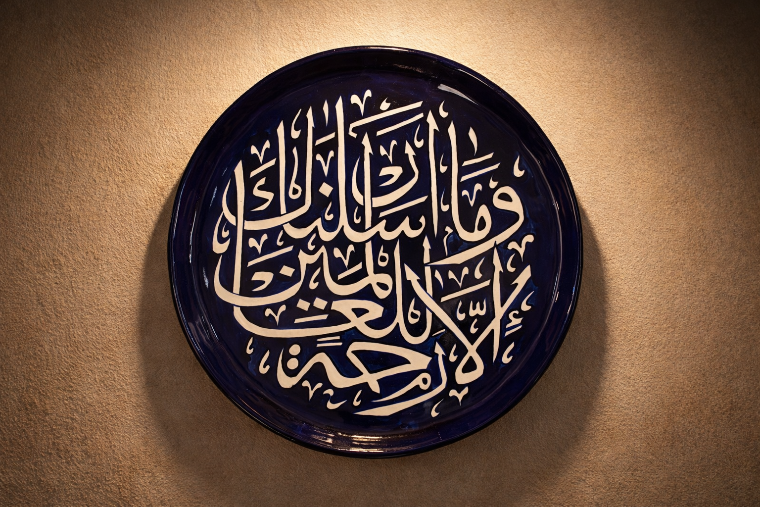 Expertly crafted by skilled artisans, this plate is made from high-quality ceramic and carefully shaped, fired, and finished using traditional techniques. The surface features a rich, deep blue glazed base, layered with hand-painted Arabic calligraphy that reflects devotion, balance, and artistic heritage. Each stroke is applied by hand, ensuring authenticity and preserving the soul of classical Islamic art.