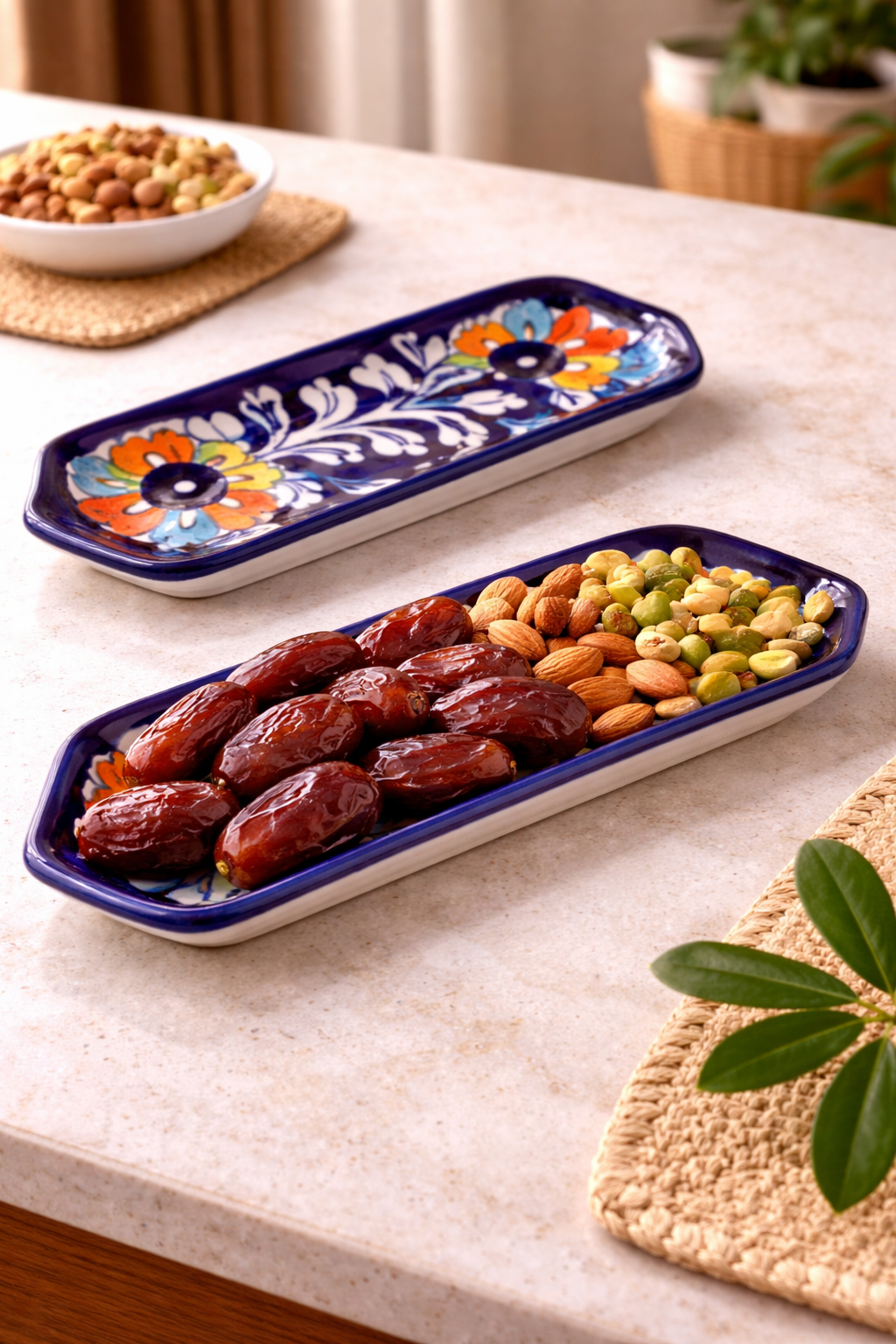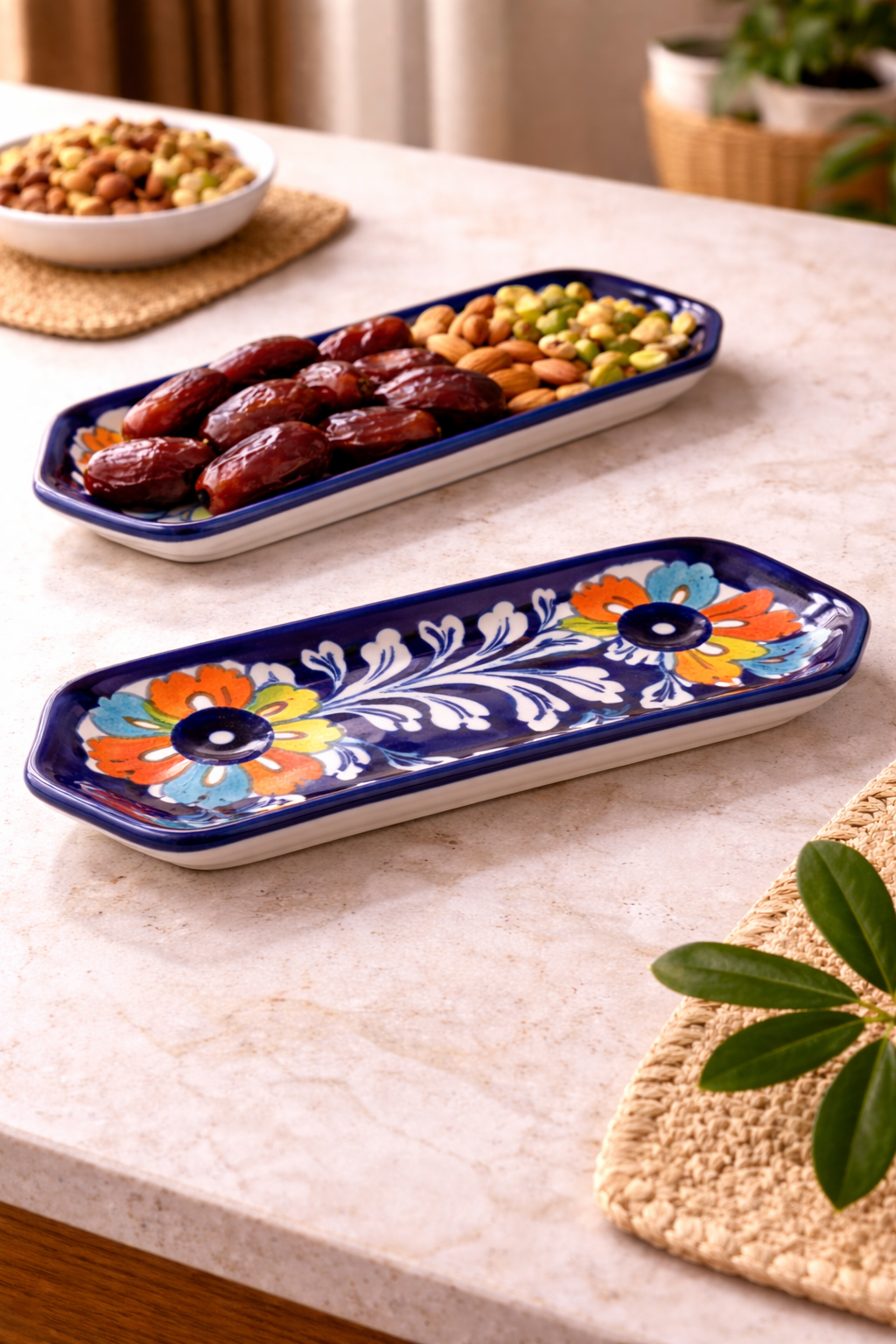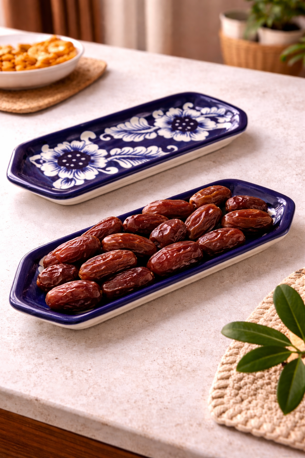 Perfect for serving dates (khajoor), dry fruits, chocolates, sweets, biscuits, or appetizers, this tray adds a refined touch to your dining setup. Whether you’re hosting guests, setting up a festive table for Ramadan, Eid, or family gatherings, or simply elevating your everyday tea-time presentation, this serving tray delivers style and functionality.