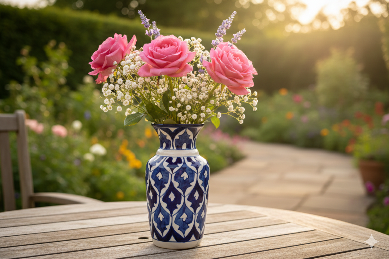 Bring classic craftsmanship into your home with this Handcrafted Blue Pottery Floral Vase from Craft N Walls. Expertly crafted and hand-painted by skilled artisans, this vase showcases traditional floral motifs in rich blue and white tones, inspired by heritage pottery art.