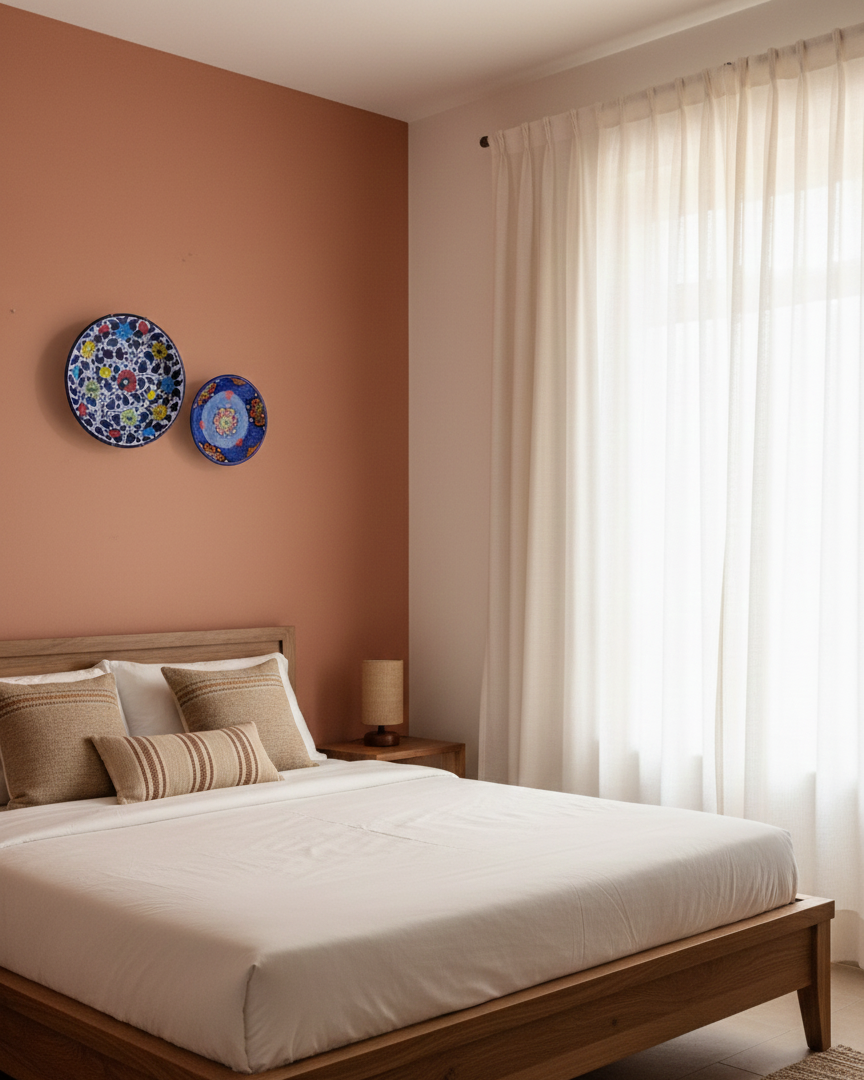 The glossy ceramic finish enhances durability while reflecting light softly, allowing the plates to stand out against neutral, pastel, or earthy wall tones. Whether displayed in a bedroom, living room, lounge, hallway, or boutique space, this wall plate set adds warmth, culture, and sophistication.