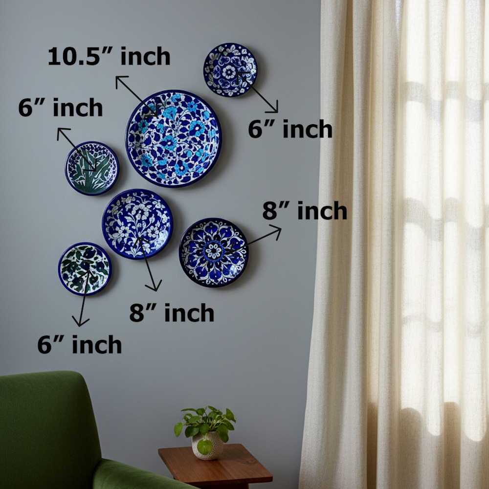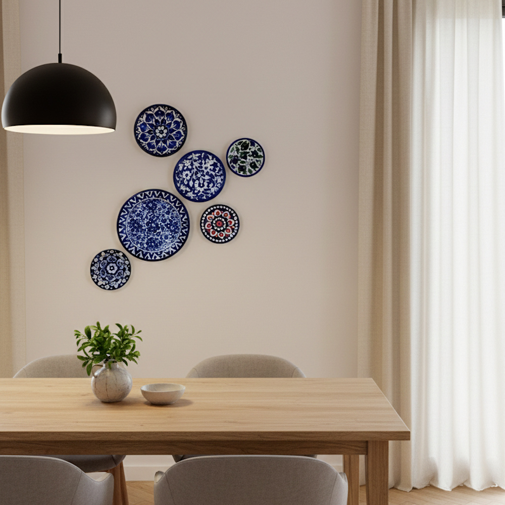 Bring timeless artistry to your walls with this Handcrafted Blue Pottery Wall Plates – Set of 6, thoughtfully curated to create a balanced and visually striking wall arrangement. Each plate is individually handcrafted by skilled artisans, showcasing traditional blue pottery techniques combined with vibrant hand-painted patterns.