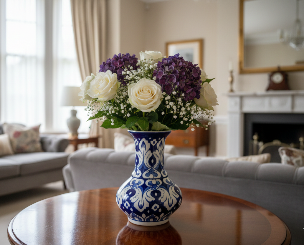 Bring classic artistry into your living space with this Handmade Blue Pottery Flower Vase by Craft N Walls. Expertly handcrafted by skilled artisans, this vase reflects timeless blue-and-white pottery traditions enhanced with a refined, modern silhouette.