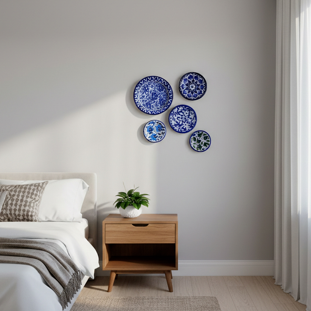 Premium Multani Blue Pottery Wall Décor Plate Set – 5 Pieces (6”, 8”, 9” & 10.5”)